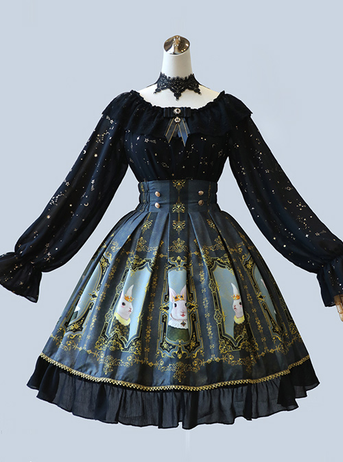 Retro Printing Palace Style High Waist Classic Lolita Skirt