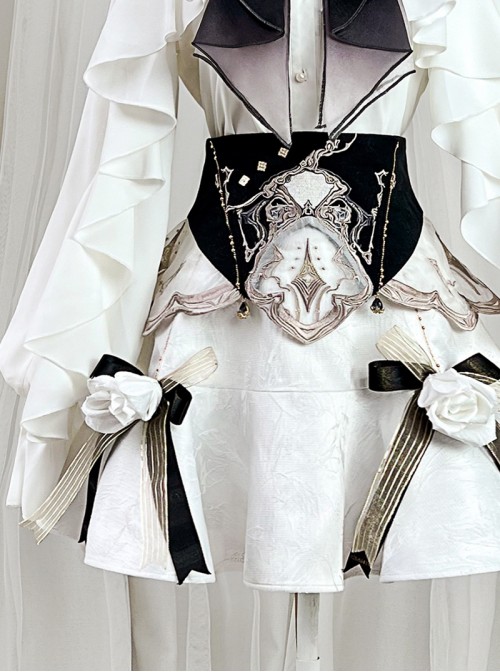 Ring Star Gate Series Elegant Gothic Lolita White Delicate Jacquard Sweet Floral Bowknot Short Skirt
