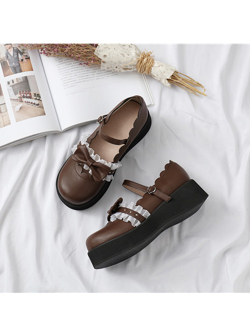 Round-toe Bowknot Lace Ruffle Cute School Lolita Thick Sole Shoes