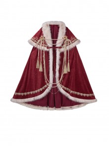 This beige Lolita maxi dress features a high neck, puff sleeves, gold cross embroidery at the neckline, and a metal buckle at the waist, exuding elegance and vintage charm.