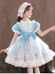 Ruffle Round Collar Bowknot Children Sweet Lolita Puff Sleeve Short Sleeve Dress