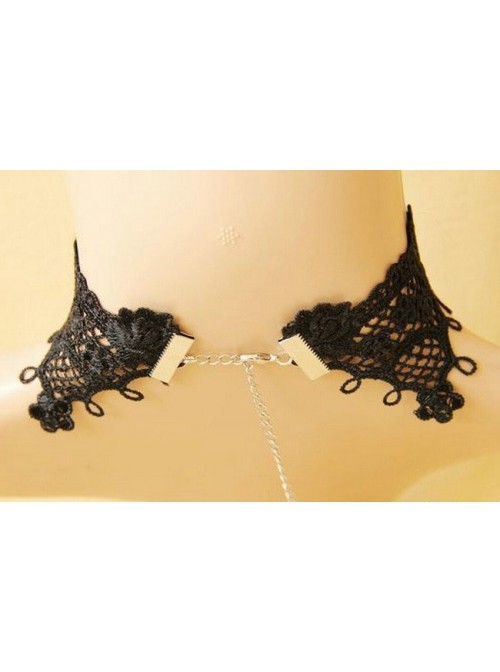 Sexy Black Lace With Red Gemstone Lolita Necklace