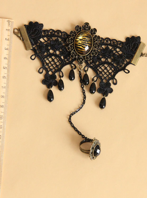 Sexy Black Lace Leopard Print Lady Lolita Wrist Strap And Ring