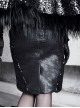 Shadow Of Snake Eyes Series Black Gothic Punk Office Kraken Black Leather Straight A Line Skirt