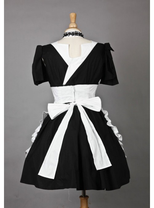 Short Sleeves Lovely Lace Cotton Cosplay Maid Costume