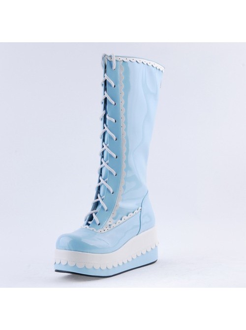 Sky Blue 2.8" High Heel Cute PU Round Toe Sweet Girls Lolita Boots