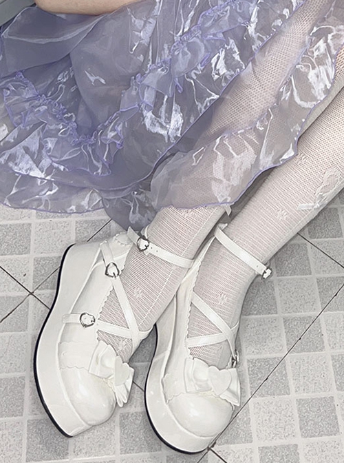 Solid Color Cute Round Toe Heart Bowknot Decoration Platform Flats Sweet Lolita Shoes