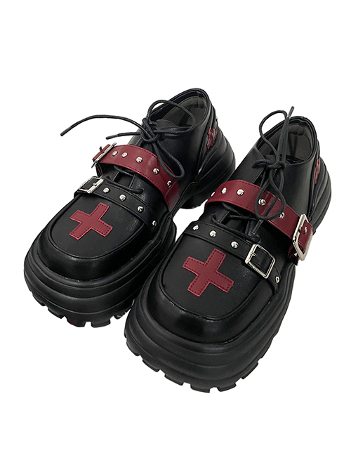 Solid Color Daily Round Head Contrast Color Crucifix Halloween Sweet-Cool Punk Lolita Mid-Heel Platform Shoes