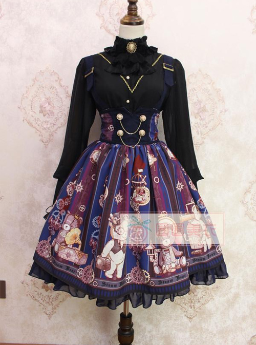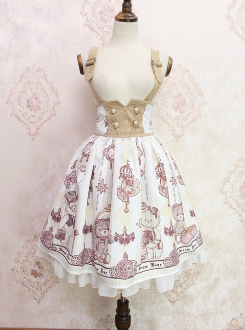 Steam Bears Double-breasted High Waist Classic Lolita Sling Skirt