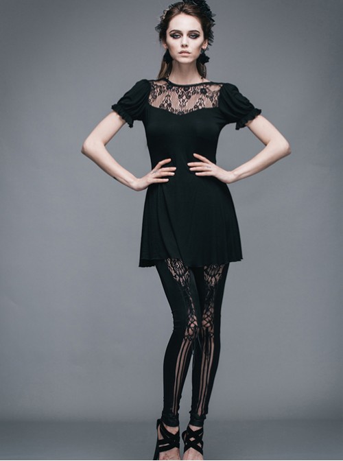 Steam Punk Gothic Lace Embroidery Long-style T-shirt Short Sleeve Short-style Dress