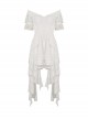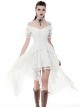 Steampunk Style Elegant One Shoulder Length Hem Retro White Lace Short Sleeve Dress