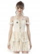 Steampunk Style Sexy Off-Shoulder Half-Sleeves Layered Lace Strap Beige Suspender Mini Dress