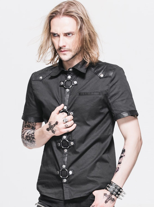 Steampunk Visual Gothic Men' Black Slim Short Sleeve Shirt