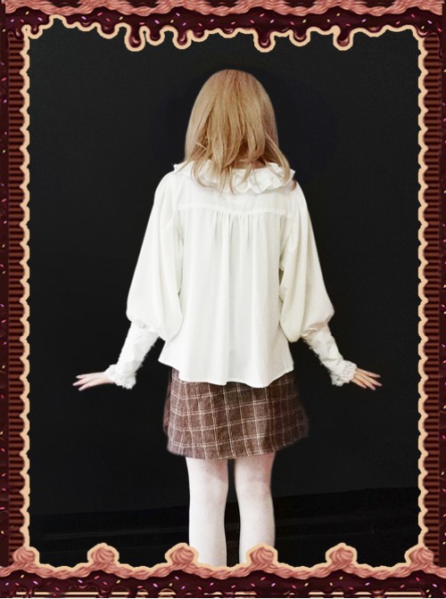 Sugar And Matcha Series Ivory Retro Bats Sleeve Classic Lolita Shirt