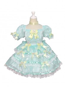 The purple sleeveless dress, purple big bowknot, lace decoration, and butterfly pendant hem design is sweet and lovely