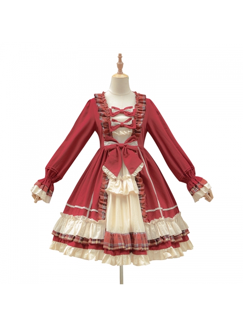 Sweet Dream Paradise Series OP Plaid Ruffle Multi-layer Stitching Hem Sweet Lolita Autumn Winter Long Sleeve Dress
