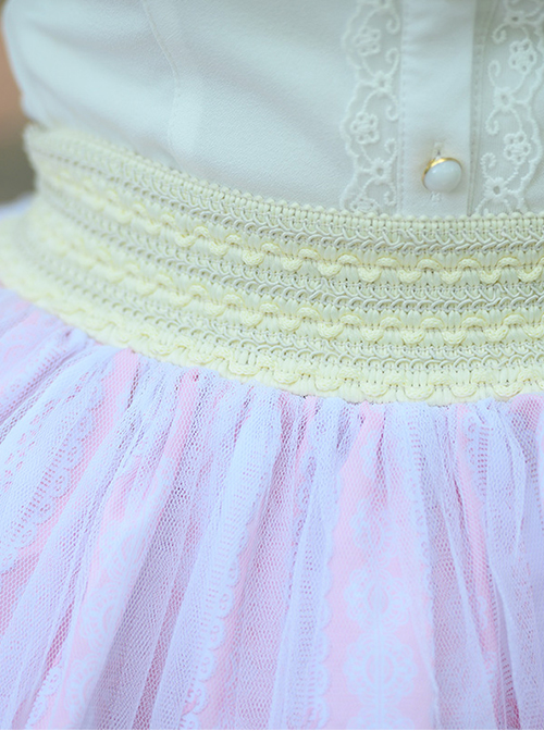 Sweet Japanese Style Delicate And Cute Graphic Print Chiffon Mesh Decoration Classic Lolita Pink Skirt