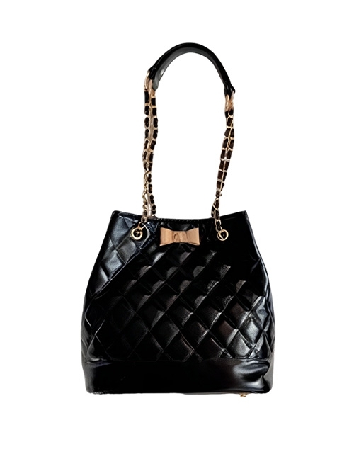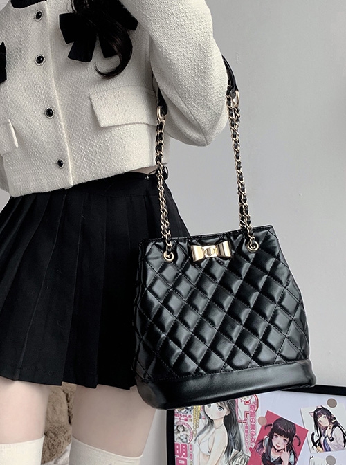 Sweet Kawaii Fashion Elegant Versatile Princess Style Bowknot Diamond Pattern Bucket Bag
