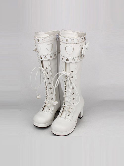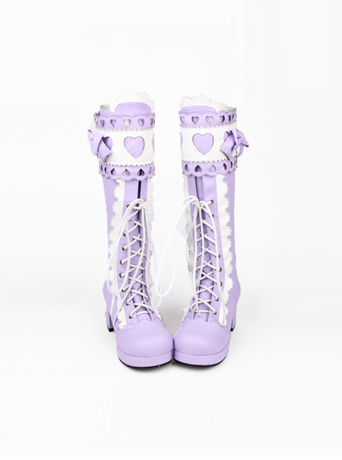 Sweet Lace Bowknot Heart-shaped Round-toe Lolita High Boots