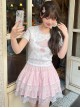 Sweet Little Cake Illustration Kawaii Fashion Floral Round Neck White Fitted Soft Girl T Shirt