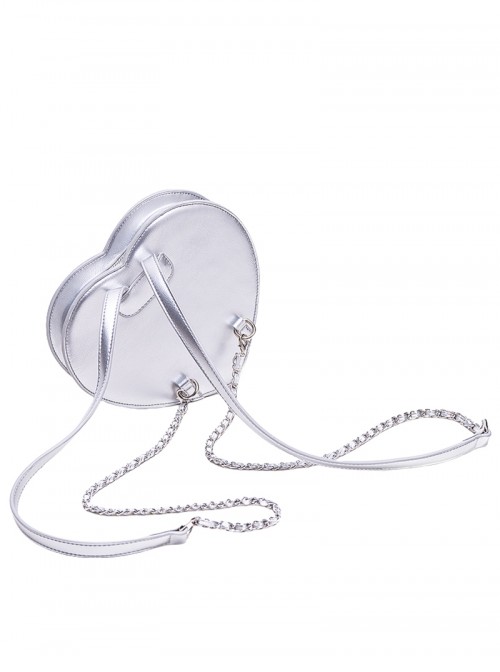 Sweet Lovely Silver Heart Shape Unique Gemstone Colored Diamond Decoration Kawaii Fashion Backpack