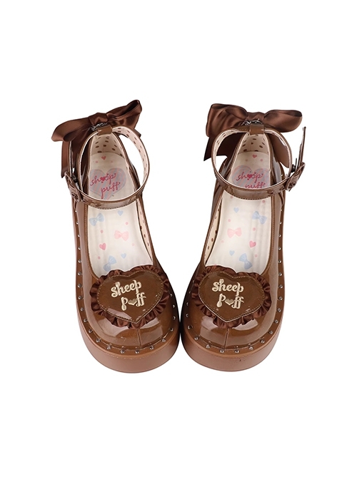 Sweet Pie Series Brown Sweet Lolita Kawaii Heart Bowknot Cute Chunky Heel Thick Platform Shoes