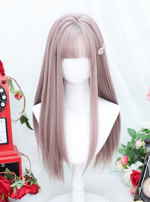 Taro Purple Internet Celebrity Full Head JK Flat Bangs Sweet Lolita Internal Buckle Long Straight Hair Wig