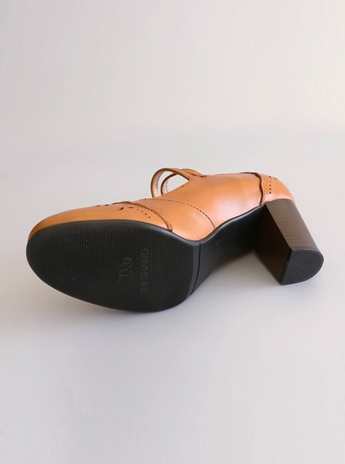 Pure Brown Hollow Out Lace Lolita High Heel Shoes