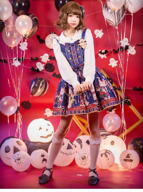The Royal Teddy Bear Band Sweet Lolita Shoulder Straps Hooded Skirt