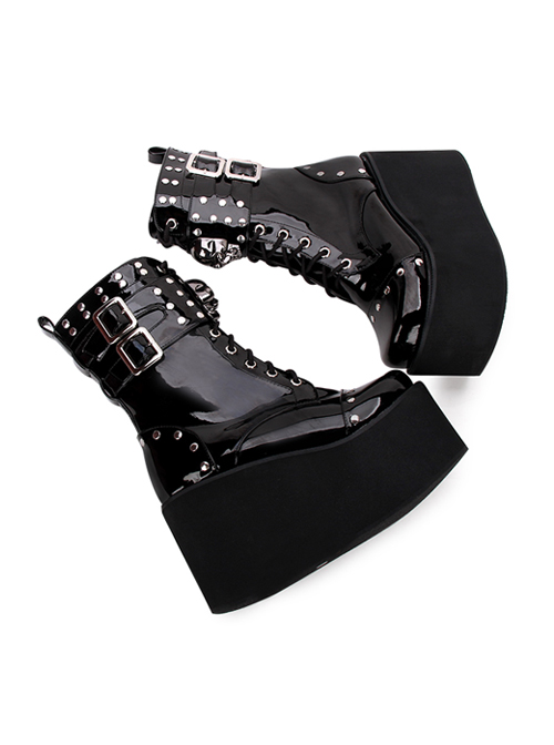 Thick Sole Black Punk Skull Decorative Side Zip Gothic Lolita Boots