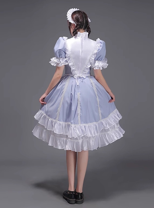 Traditional European Housekeeper Maid Servant Stage Performance Costume Lolita Prom Glossy Satin Dress