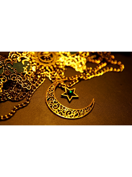 Vintage Fine Metal Hollow Crescent Shape Design Pentagram Metal Gear Decoration Punk Lolita Necklace