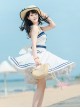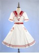 Vintage Navy Style Striped Bow-Knot Lapel Short Sleeve Short Coat Backless Striped Hem Dress Classic Lolita Sleeveless Dress Set