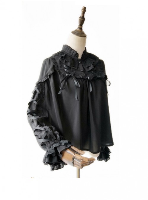 Warm Milk Tea Pure Cotton Black Lace Puff Sleeve Classic Lolita Shirt