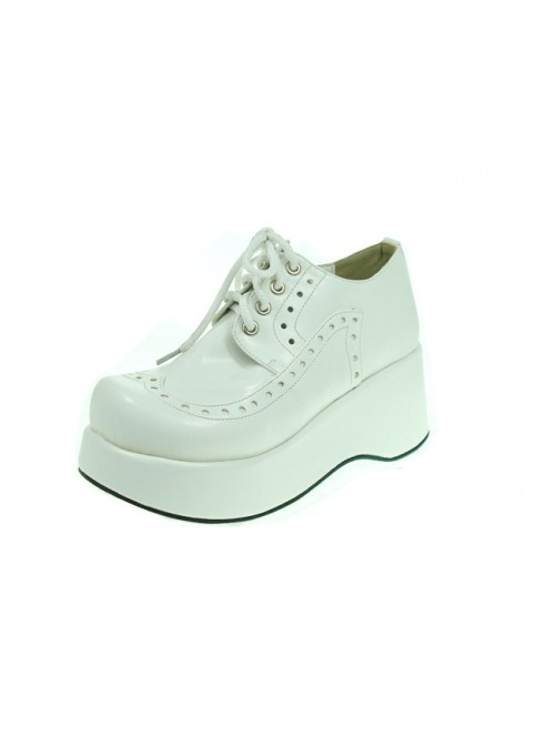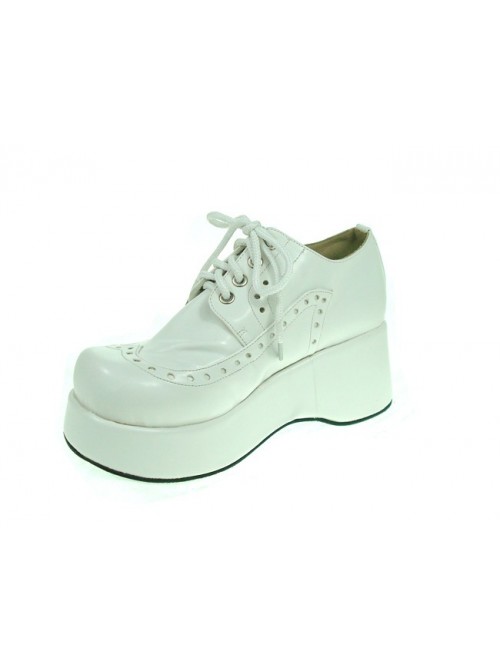 White 2.4" Heel High Romatic Suede Round Toe Lace Tie Platform Girls Lolita Shoes