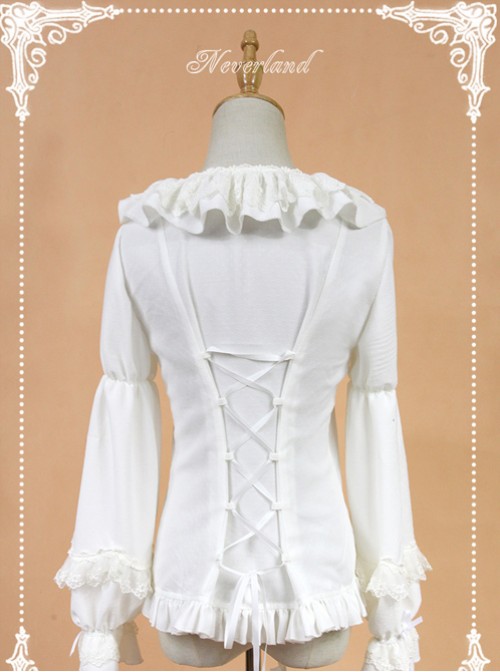 White Doll Collar Lantern Sleeve Bowknot Lolita Blouse