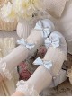 Elegant princess-style shoes, with white lace trim, satin bow, and French pearl chain decoration, giving it a ballet-like feel.