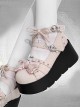 Sweet platform platform shoes with a sweet and cute round-toe design. The canvas material is more breathable and comfortable. They are fixed with multiple straps and decorated with ribbon bows and love metal buckles.