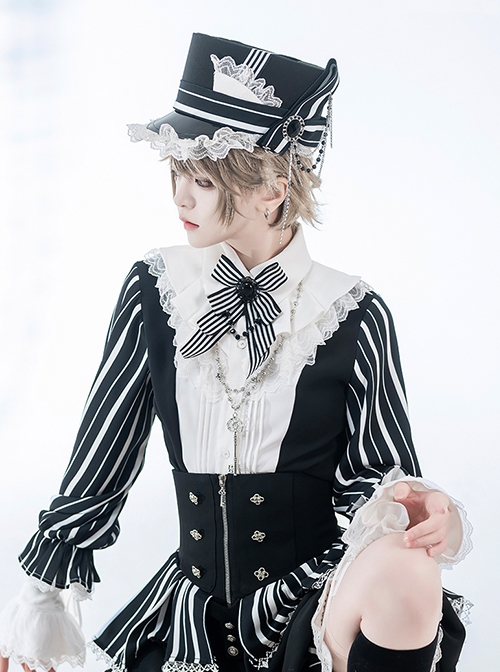 Wonderful Trick Series Retro Elegant Prince Style Ouji Fashion Black White Stripes Gorgeous Lace Hat